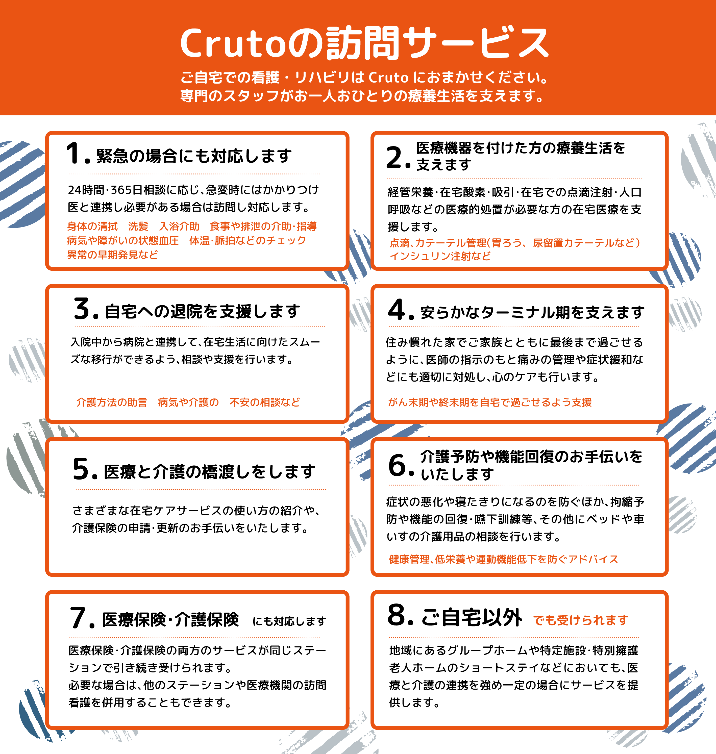 看護ケアを提供し、自立への援助を促し、療養生活を支援するサービスです。