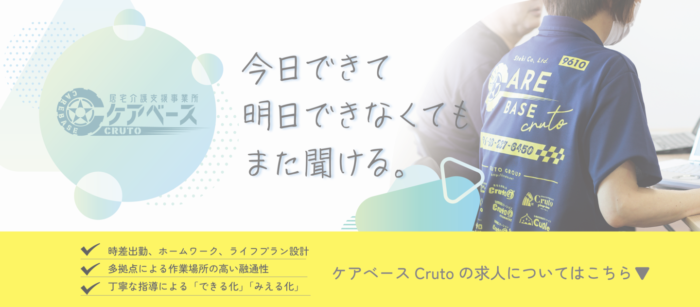 私たちCruto(クルト)は、訪問看護・リハビリを通して 主治医、ケアマネージャー、その他のサービス提供者と連携し利用者さまはもとより、そのご家族さまに安心して住み慣れたご自宅で生活して頂けるよう、お手伝いさせて頂きます!